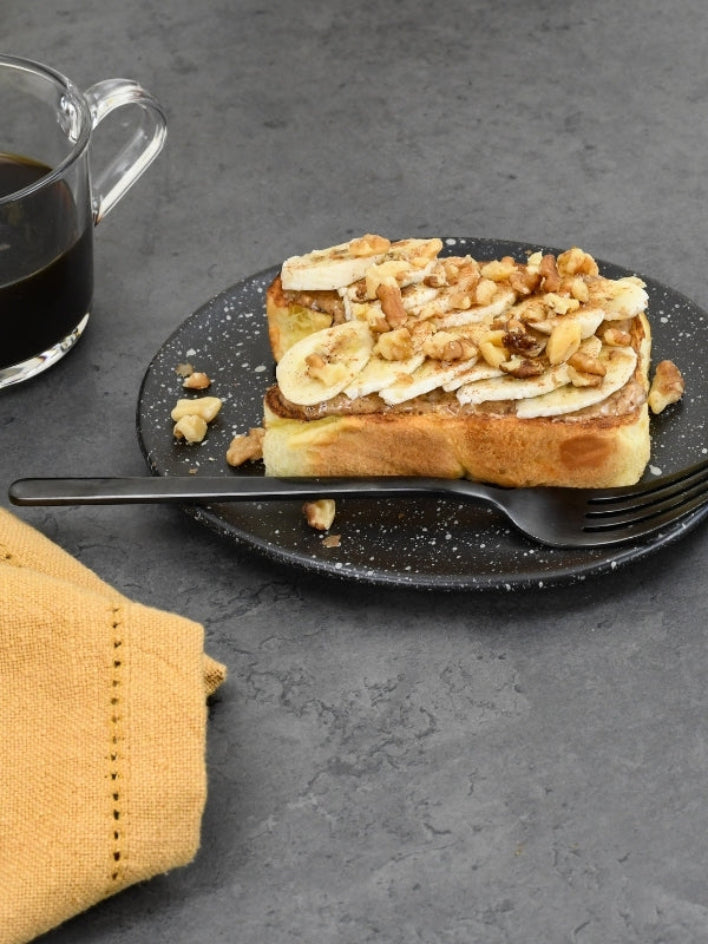 The brioche here is important, as it brings the egg and buttery notes we know and love in a classic banana bread recipe, but this also works as a delicious banana toast with whatever bread you have lying around. And just like any good banana bread recipe, customize this to make it “you” like adding dark chocolate shavings, dried fruit, or replace the honey with a drizzle of caramel sauce. Feel free to (pardon the pun) go bananas.