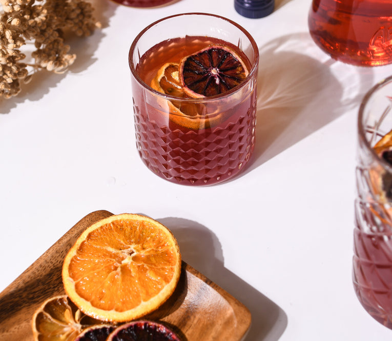 Our tweak includes blood orange juice that gives this a deep red color you won’t get from the classic spritz. Making your own dehydrated citrus for the garnish is super easy, but it makes you look like a pro mixologist. You can make a large batch and store it in an airtight container to use over time.