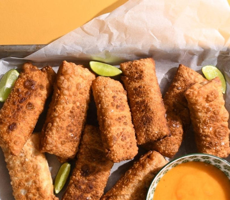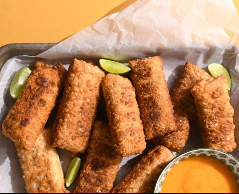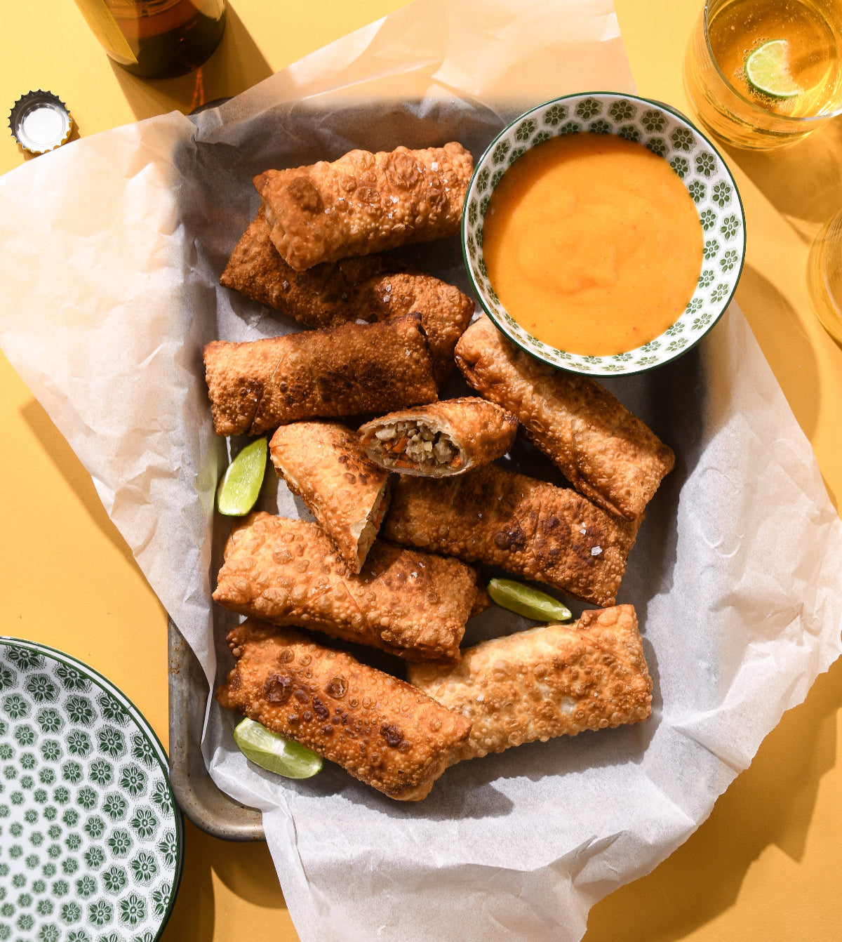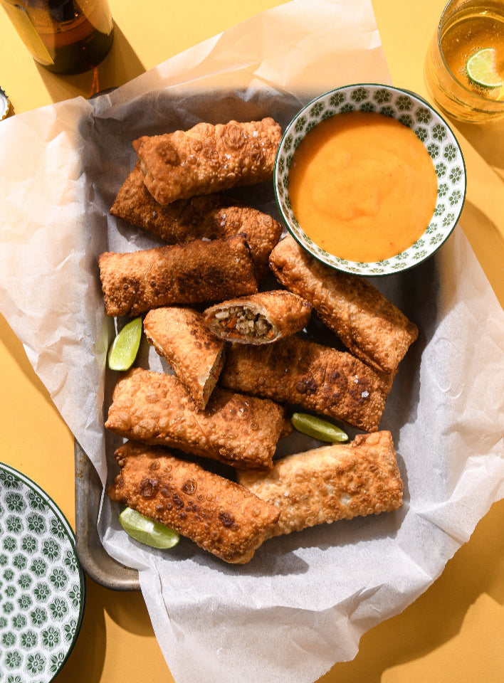 As with all good egg rolls, an equally delicious dipping sauce is a requirement—and this one is so good. We combine some of our favorite flavors: fresh honey mango and sweet chili sauce, for a sweet and citrusy combination that pairs great with the spice in the egg roll. Great as a light bite for a party or game-day snack, but can also be a full meal with a side of coconut rice and a simple slaw.