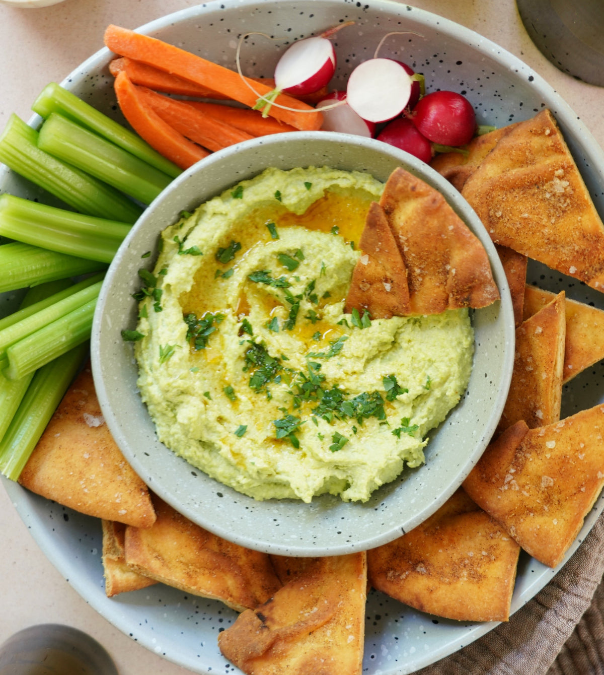 This dip was shockingly simple to make and super flavorful. Particularly loved the spiced pita chips - plan to make a double batch of these next time for snacking through the week!