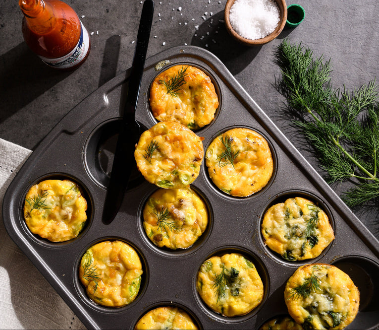 Breakfast can be a challenge. Luckily, we’ve got two versions of a delicious, satisfying breakfast that can fit your busy lifestyle. Enter: the egg bite. Perfectly compact, individually portioned and no fork required. Hosting a brunch gathering and don’t want to make eggs to order? Egg bites are a total crowd pleaser. Want to make breakfast once and, in seconds, have the leftovers ready to eat all week long? Say it with us…egg bites. We’ve created both a meat and a meatless option so there’s something for everyone. And once you have the mechanics down, feel free to get creative and use this as a base for other delicious egg bite concoctions you come up with.
