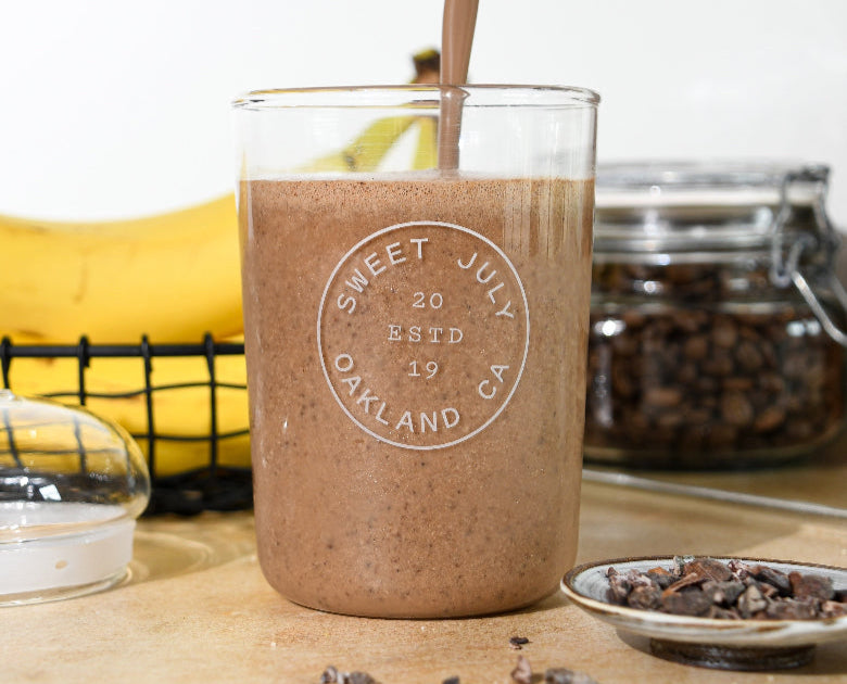 This is the perfect breakfast, post-workout refuel or craving kicker for a busy afternoon on-the-go. Our Sweet July House Blend is the featured flavor, with the infusion of a few of our favorite warm spices and a healthy serving of cocoa nibs for texture.