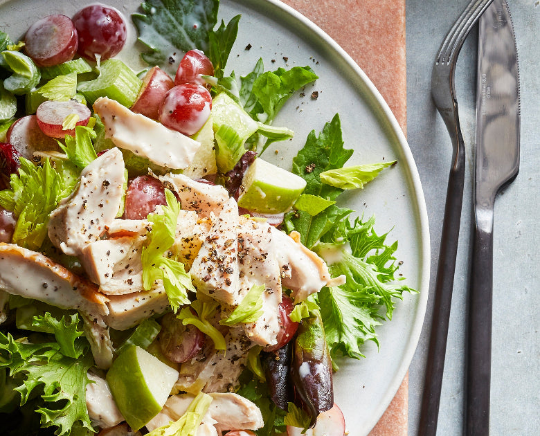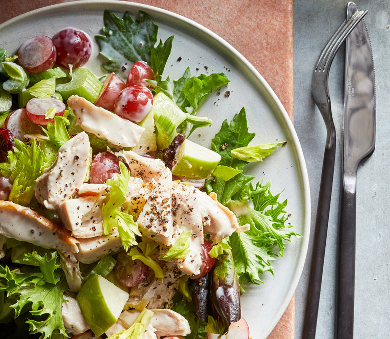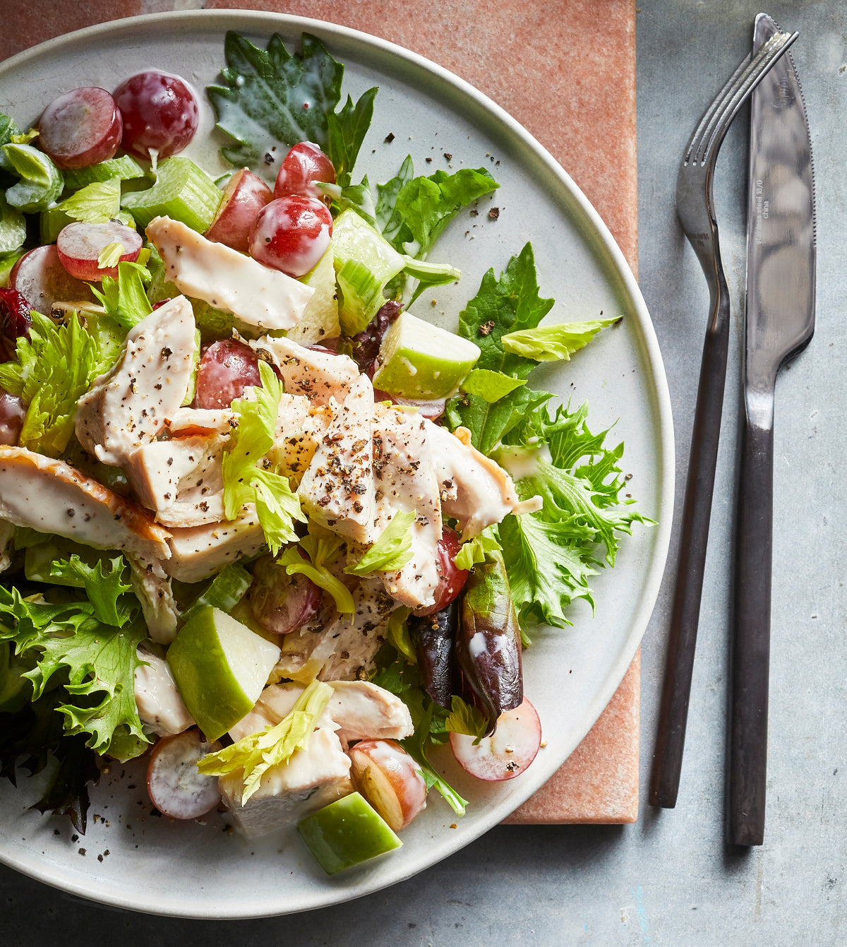 Tender turkey, crisp apples, juicy grapes, and crunchy walnuts come together in a light, tangy dressing for a refreshing twist on the classic Waldorf salad. It’s the perfect way to give your leftover turkey new life—simple to toss together, deliciously satisfying, and just what you want after a big holiday feast.