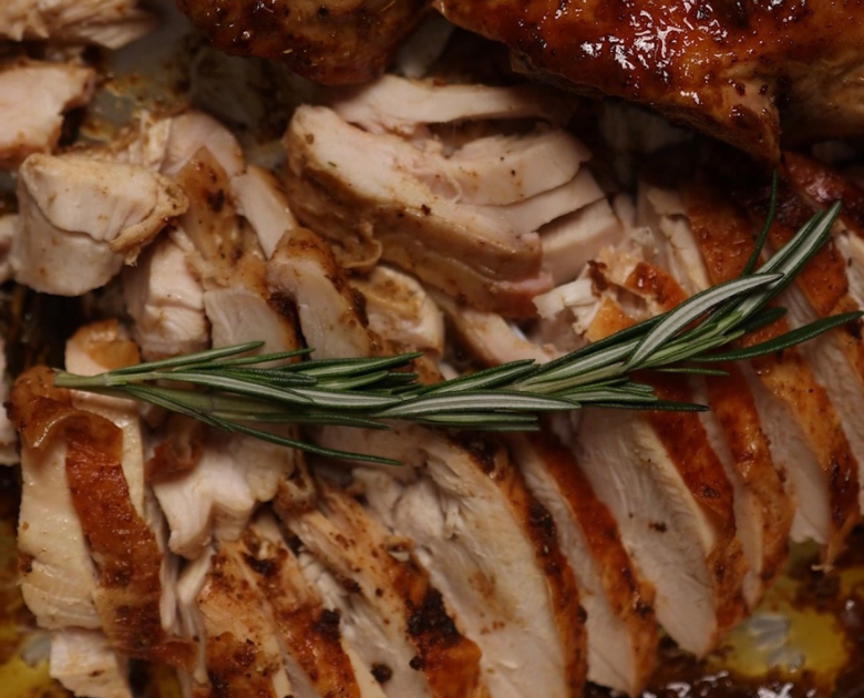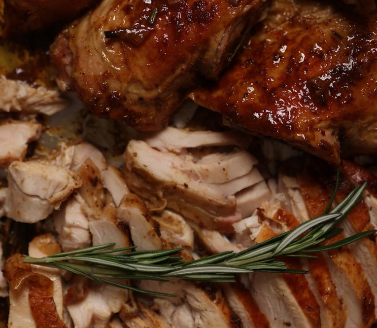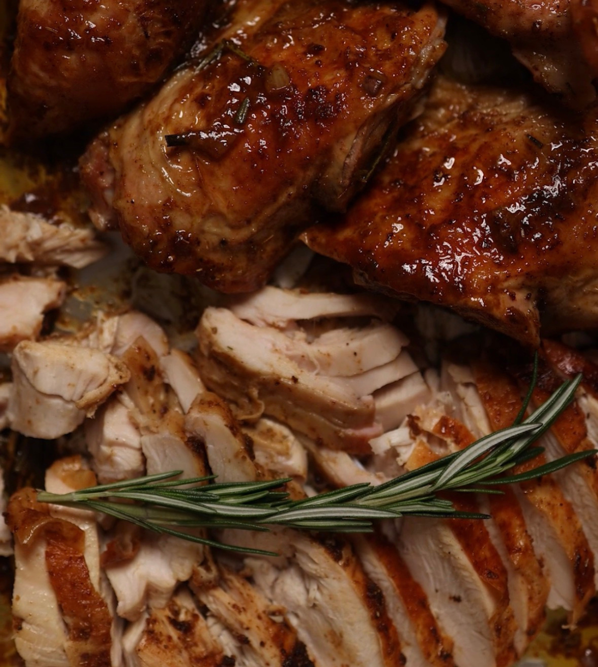 A simple dry brine locks in moisture while a spatchcocked bird ensures even cooking and a faster roasting time. Brushed with a flavor packed seasoned butter and finished with a bright, garlicky balsamic pan sauce, this recipe gives a holiday staple a little twist.