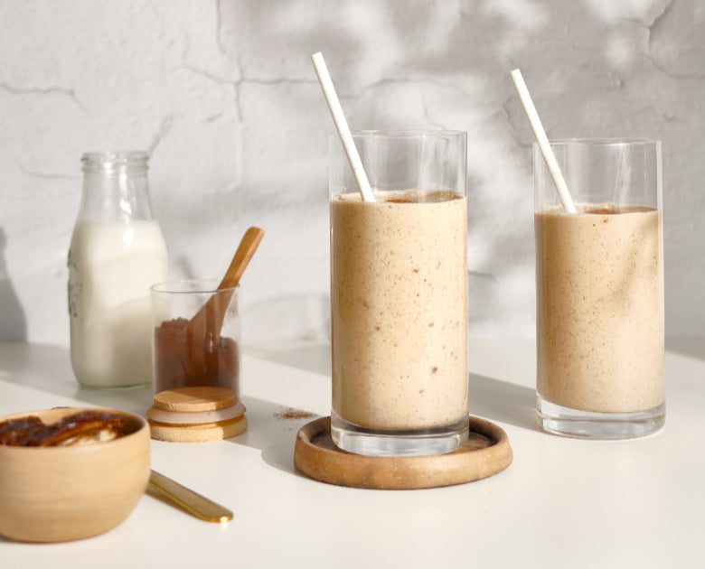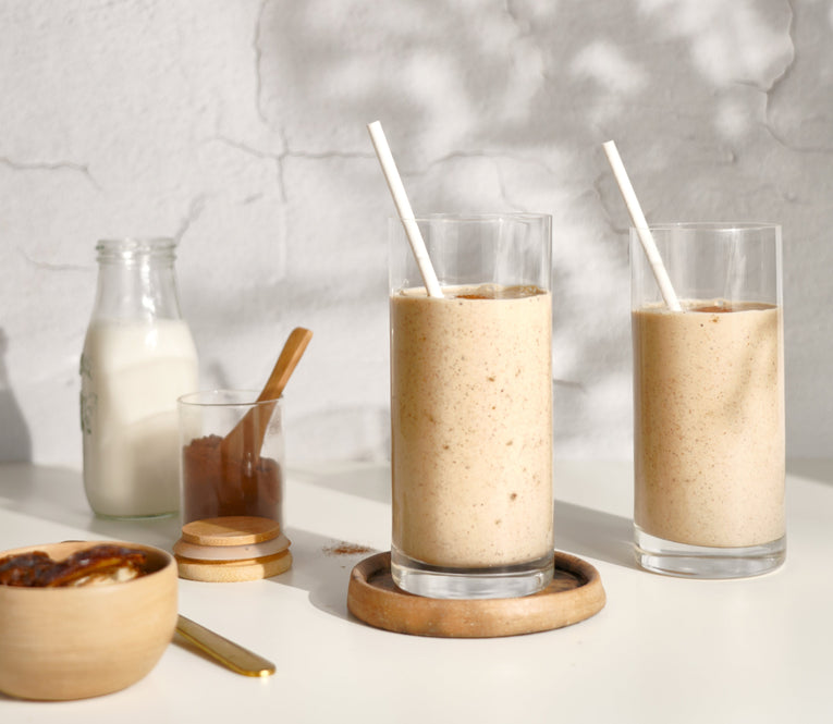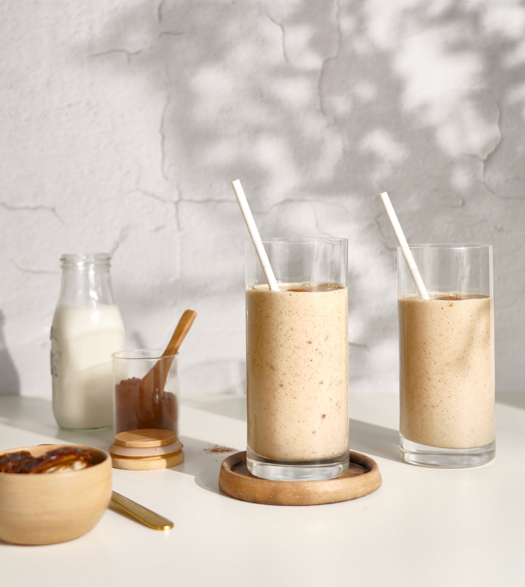 We love the combination of almond with the other flavors in this smoothie, but feel free to play around with other milks and butters. Pro tip: blend in a spoonful of ground flaxseed for extra fiber to keep you feeling full longer.