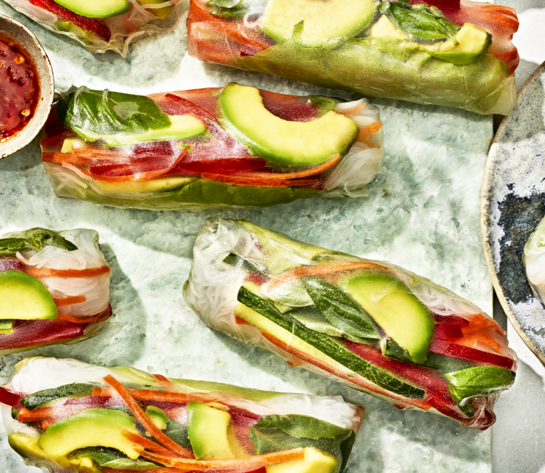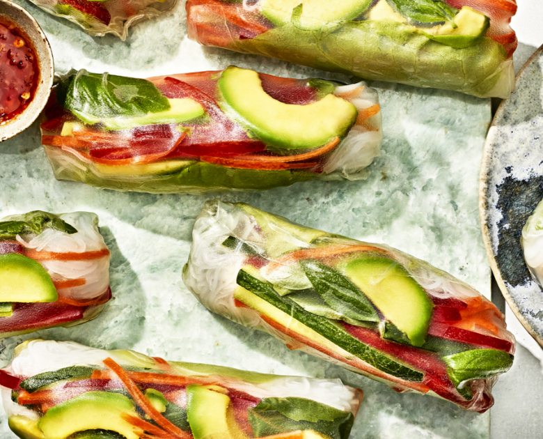 We love putting these Summer Rolls together for summer party's. They're easy to assemble and can be done before the crowd arrives. Fresh herbs and veges will keep your guests satisfied, but not too full for the main spread.