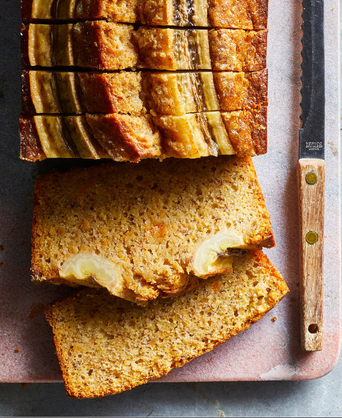 Mashed sweet potatoes and ripe bananas team up to make a moist, flavorful bread with just the right amount of sweetness and a hint of nuttiness, from flaxseed. Perfect for breakfast, gifting, or sneaking a slice with your afternoon coffee.