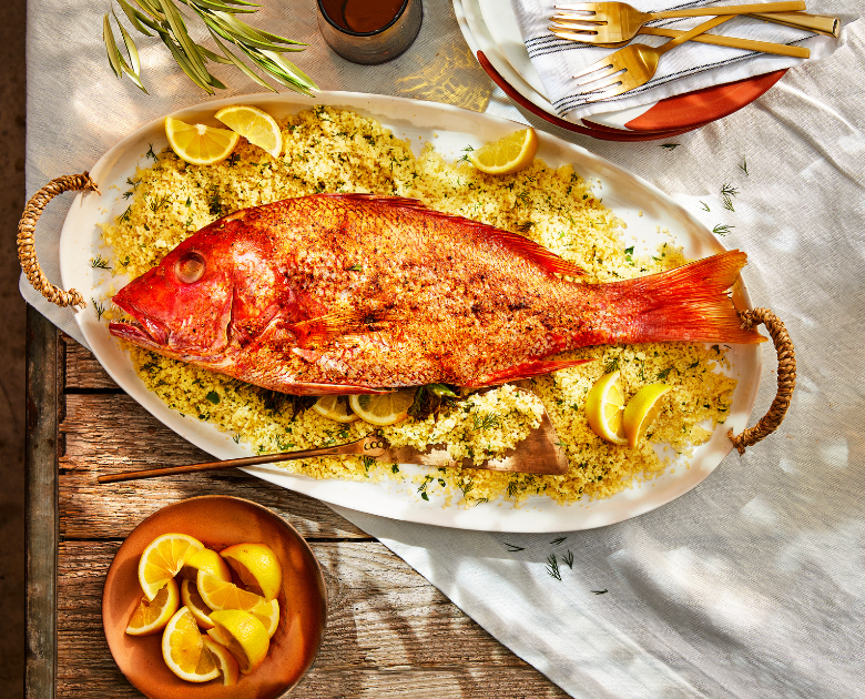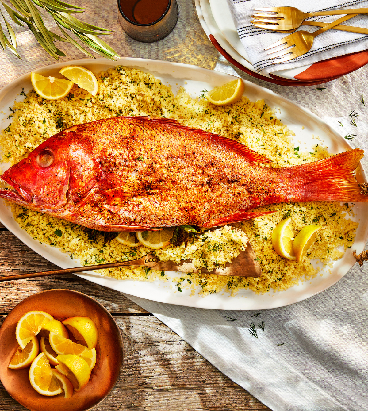 The fish is brushed with smoky paprika and olive oil, then roasted with herbs, garlic, and lemon until tender and fragrant. Served over a bed of buttery, herbed couscous kissed with citrus, it’s a simple dish that's perfect for sharing around a cozy table.