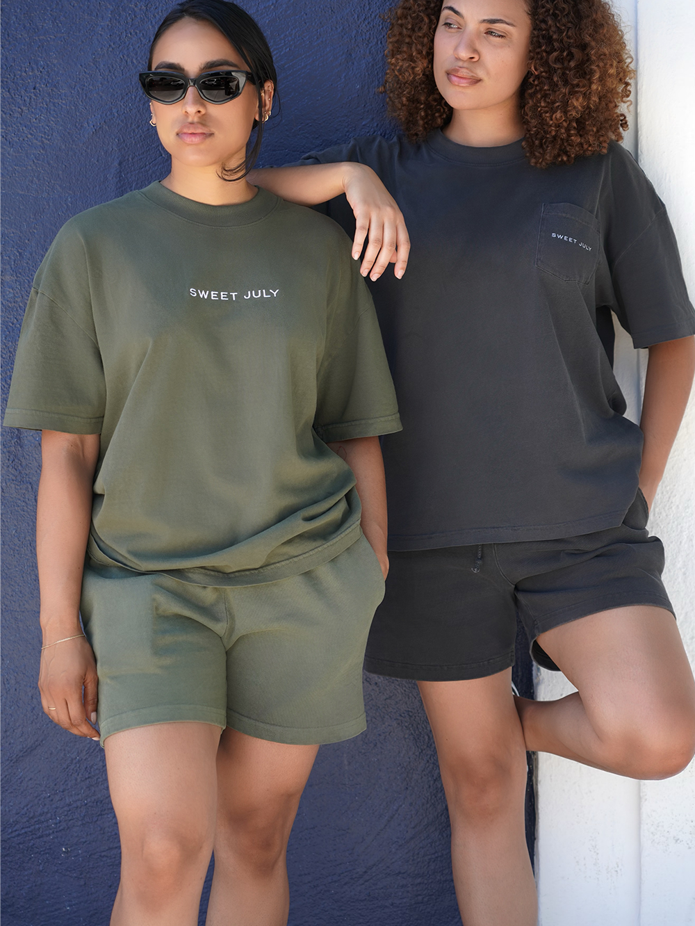 A unisex fit, we recommend sizing up for a more oversized look. Pigment dyed, each piece is cut and sewn from scratch in Los Angeles. As such, there may be slight variations in each piece due to its customization.