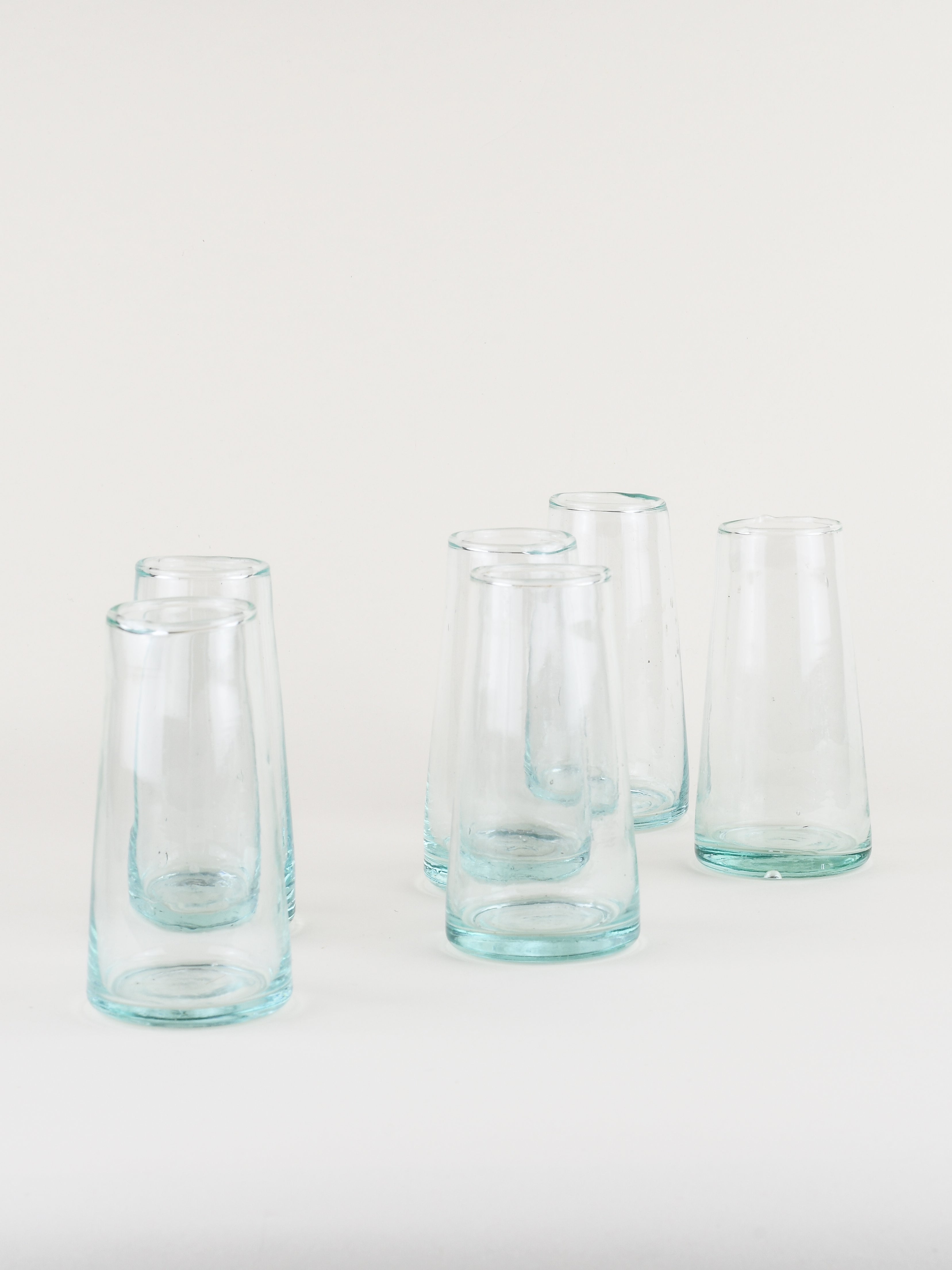 Made from recycled wine bottles, our Moroccan champagne glasses give you more of a reason to celebrate big or small moments in life! Each glass is hand-blown and has a unique style and shape. The handblown construction is evident in the bubbles suspended in the glass itself and the organic forms that the vessels take.