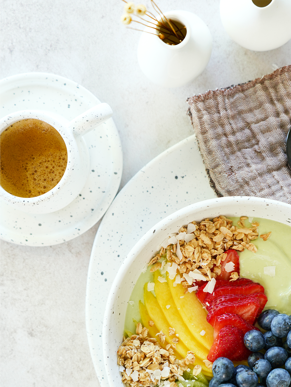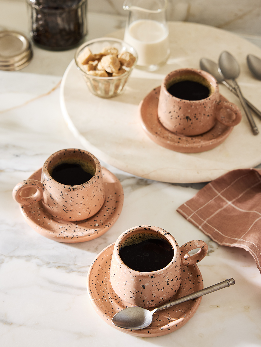A ceramic collection beautiful enough for guests but durable enough to withstand every day use. The subtle speckled pattern adds visual interest and texture making it the perfect backdrop for all your delicious kitchen creations. Each piece is hand-thrown and unique giving it a beautiful handmade quality. Make the Edgewater Espresso Cup & Saucer your go-to set for your morning espresso or afternoon pick-me-up. Shop the line in white, black, grey, and chai.