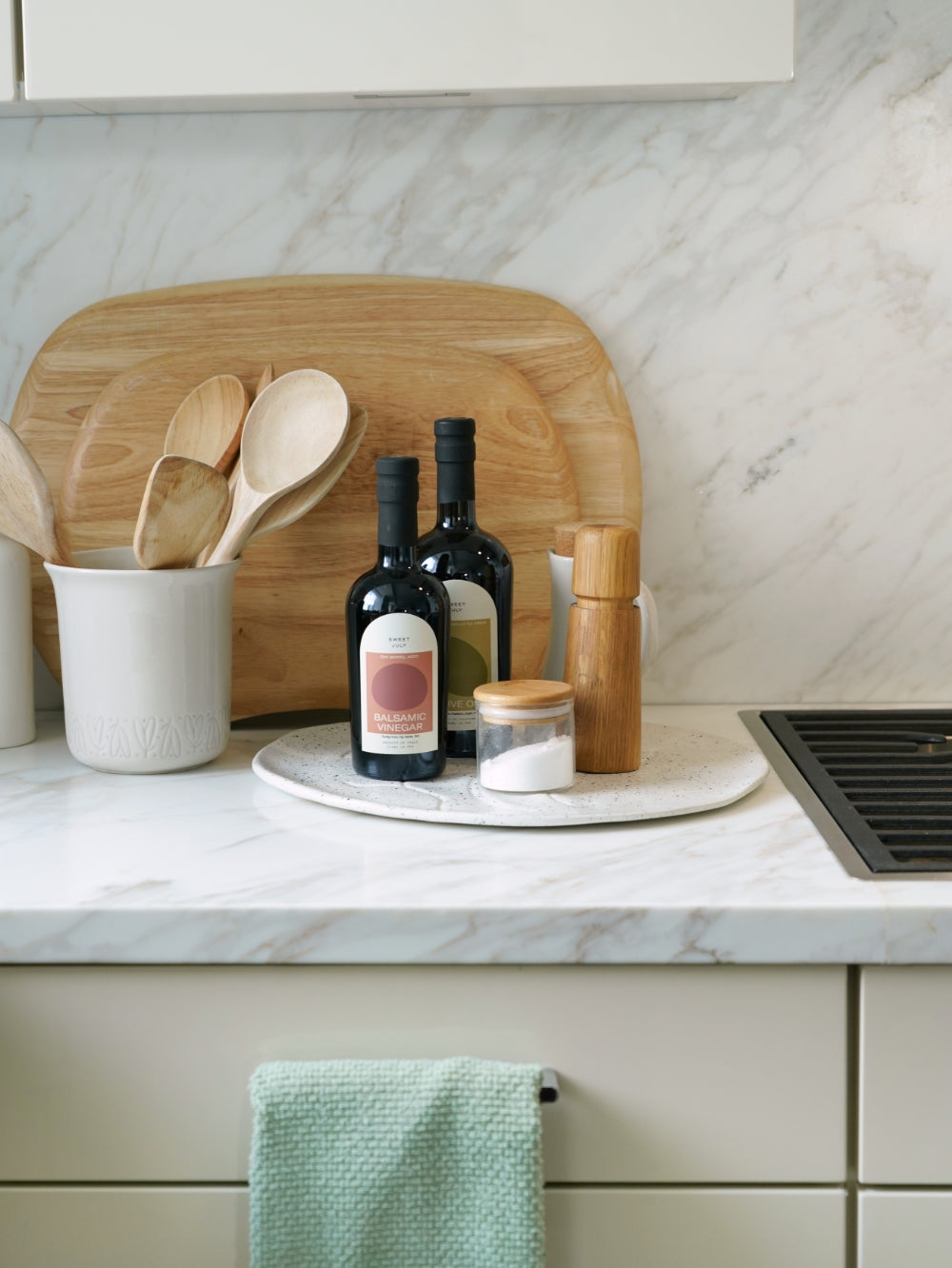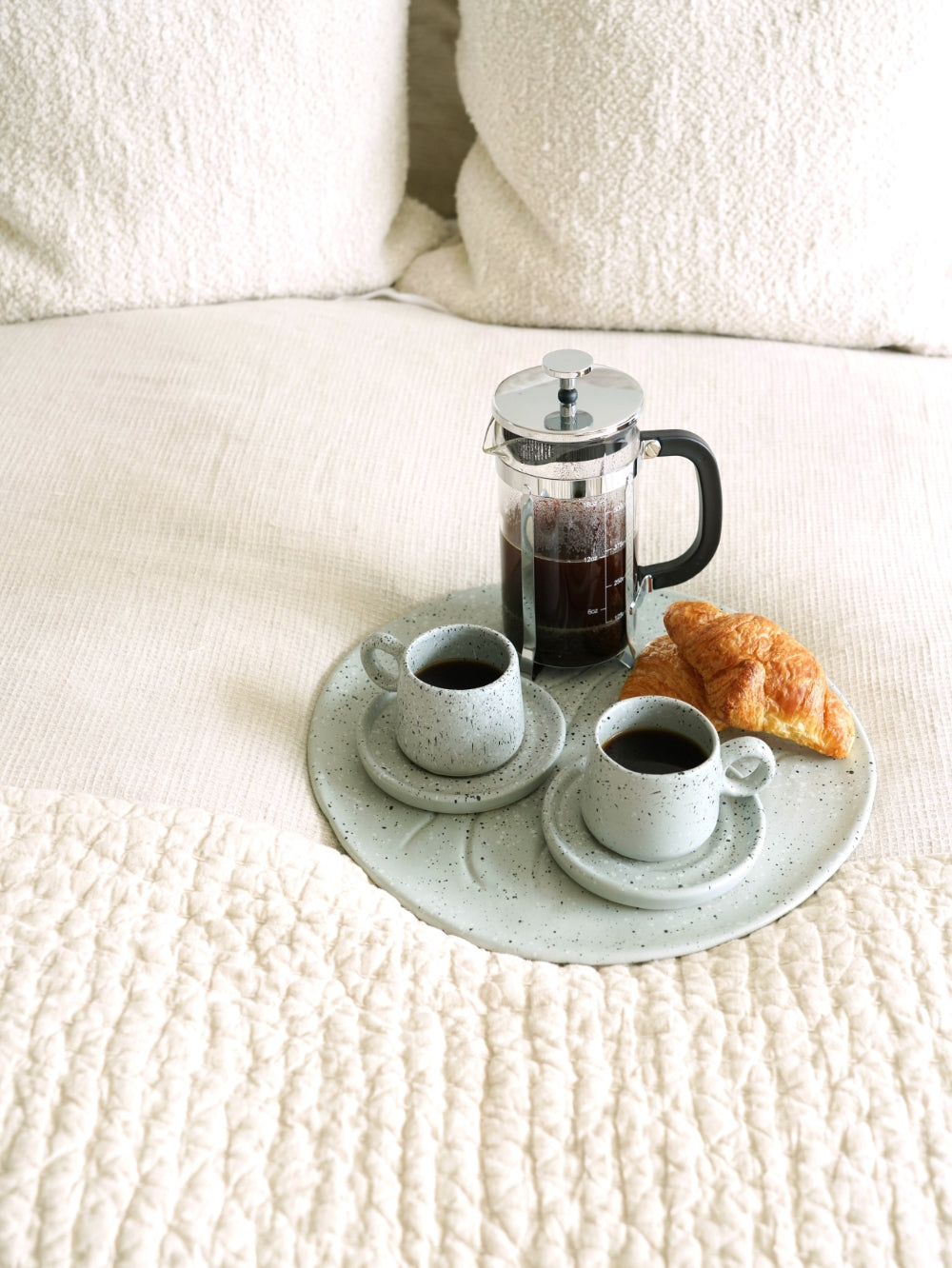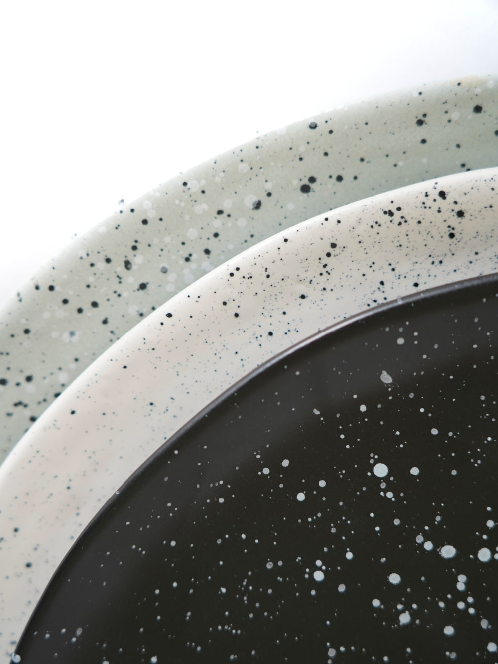 A ceramic collection beautiful enough for guests but durable enough to withstand every day use. The subtle speckled pattern adds visual interest and texture making it the perfect backdrop for all your delicious kitchen creations. Each piece is hand-thrown and unique giving it a beautiful handmade quality. Shop the line in white, black, and grey.
