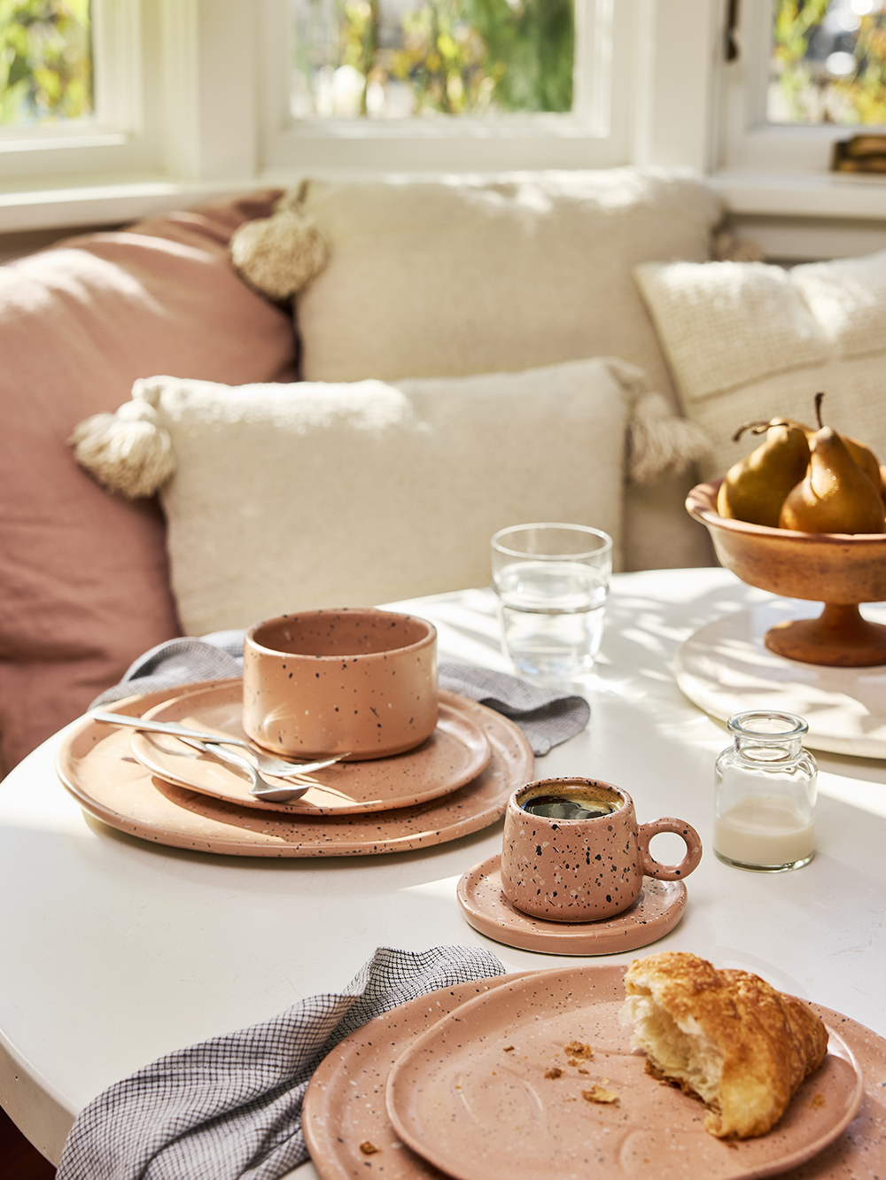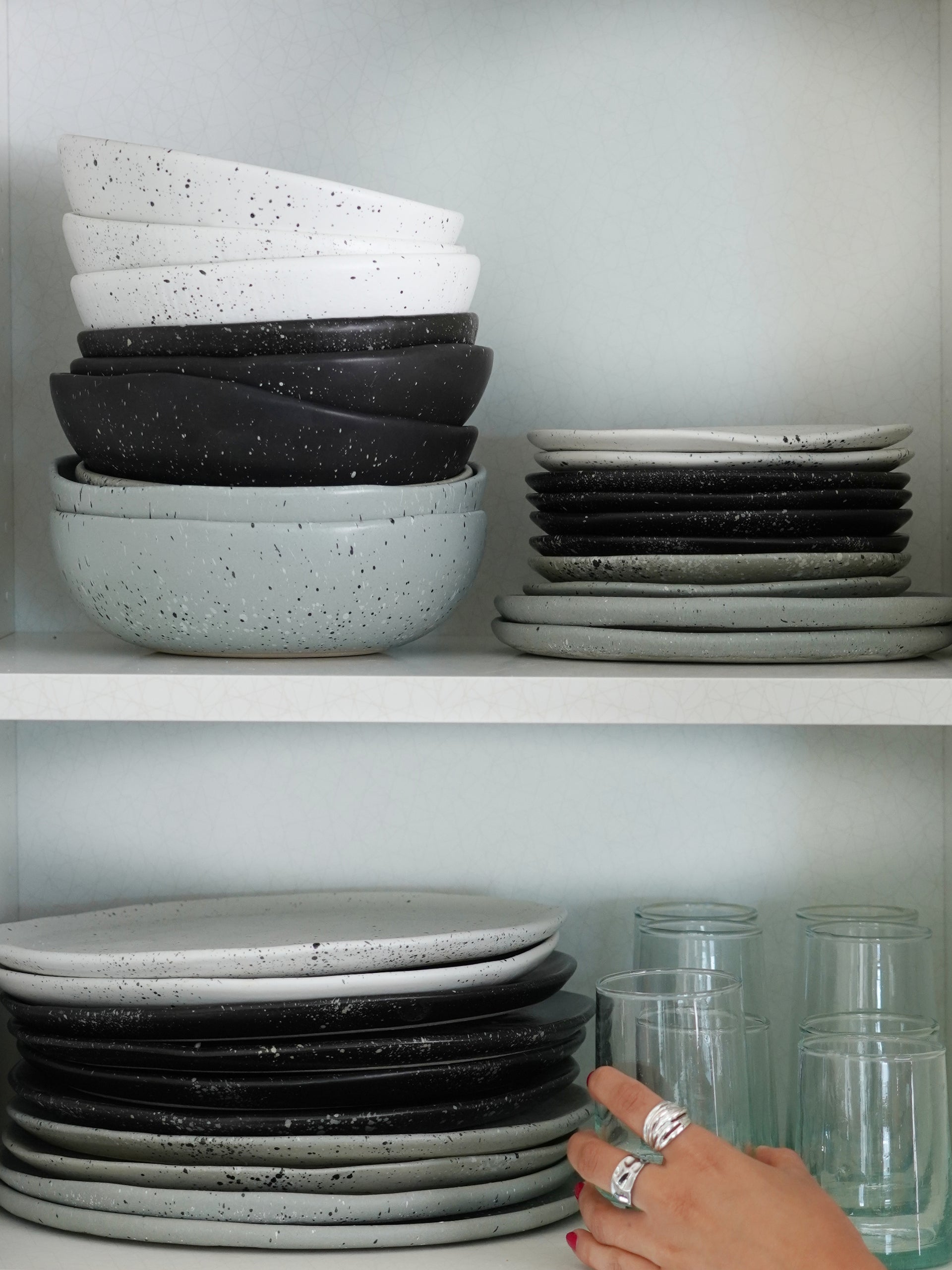 A ceramic collection beautiful enough for guests but durable enough to withstand every day use. The subtle speckled pattern adds visual interest and texture making it the perfect backdrop for all your delicious kitchen creations. Each piece is hand-thrown and unique giving it a beautiful handmade quality. The Edgewater Side Plate is the ideal size for snacks, appetizers, starters, and seamlessly layers atop our Edgewater Dinner Plate for more formal dining. Shop the line in white, black, grey, and chai.