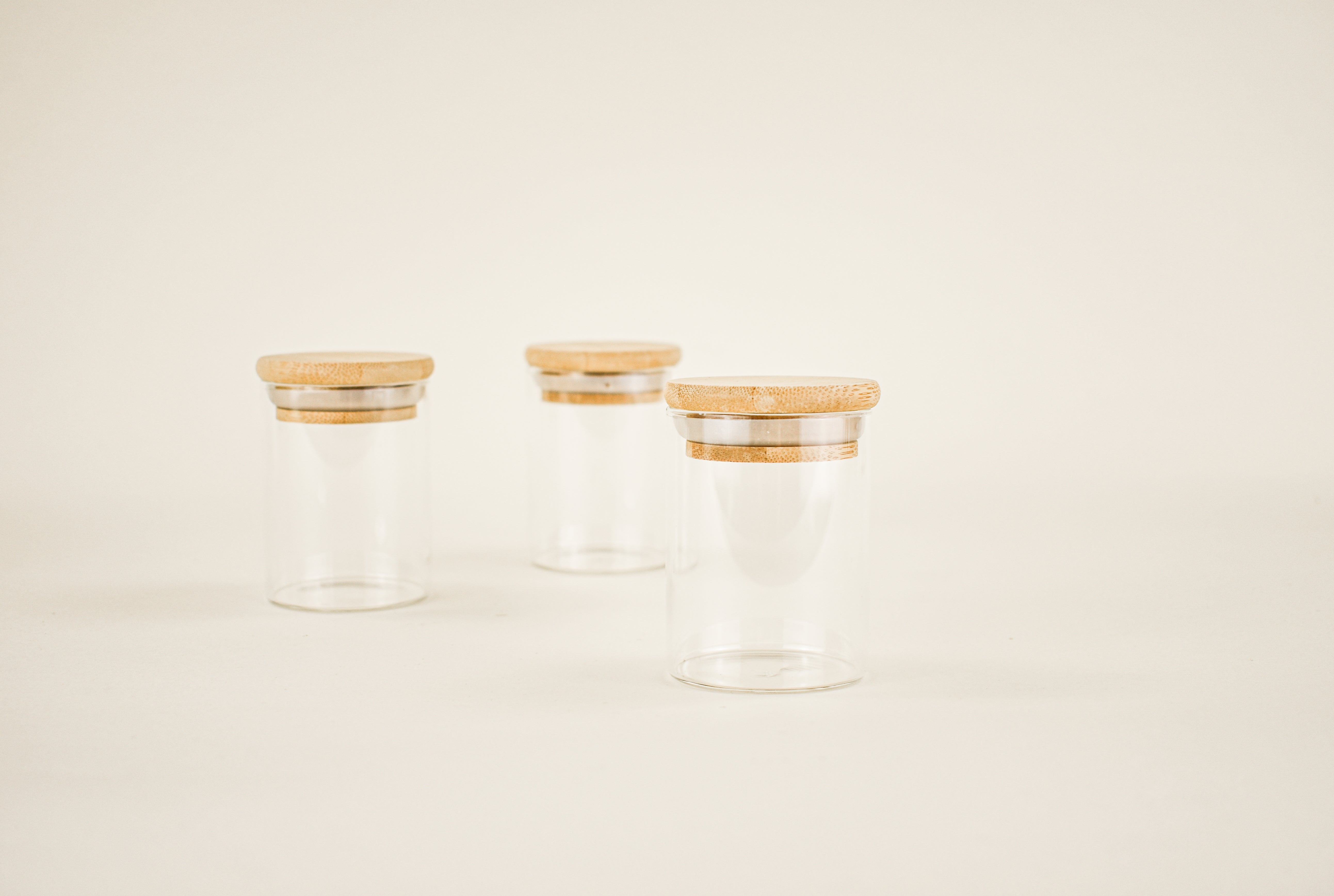 Transform your spice cabinet with beautiful glass jars perfect for all your pantry essentials. Each jar has a silicone air-tight suction liner to prevent spilling and retain freshness. They're great for stacking in your cupboard or can be paired with our tiered Sweet July Spice Rack to become a beautiful countertop display.