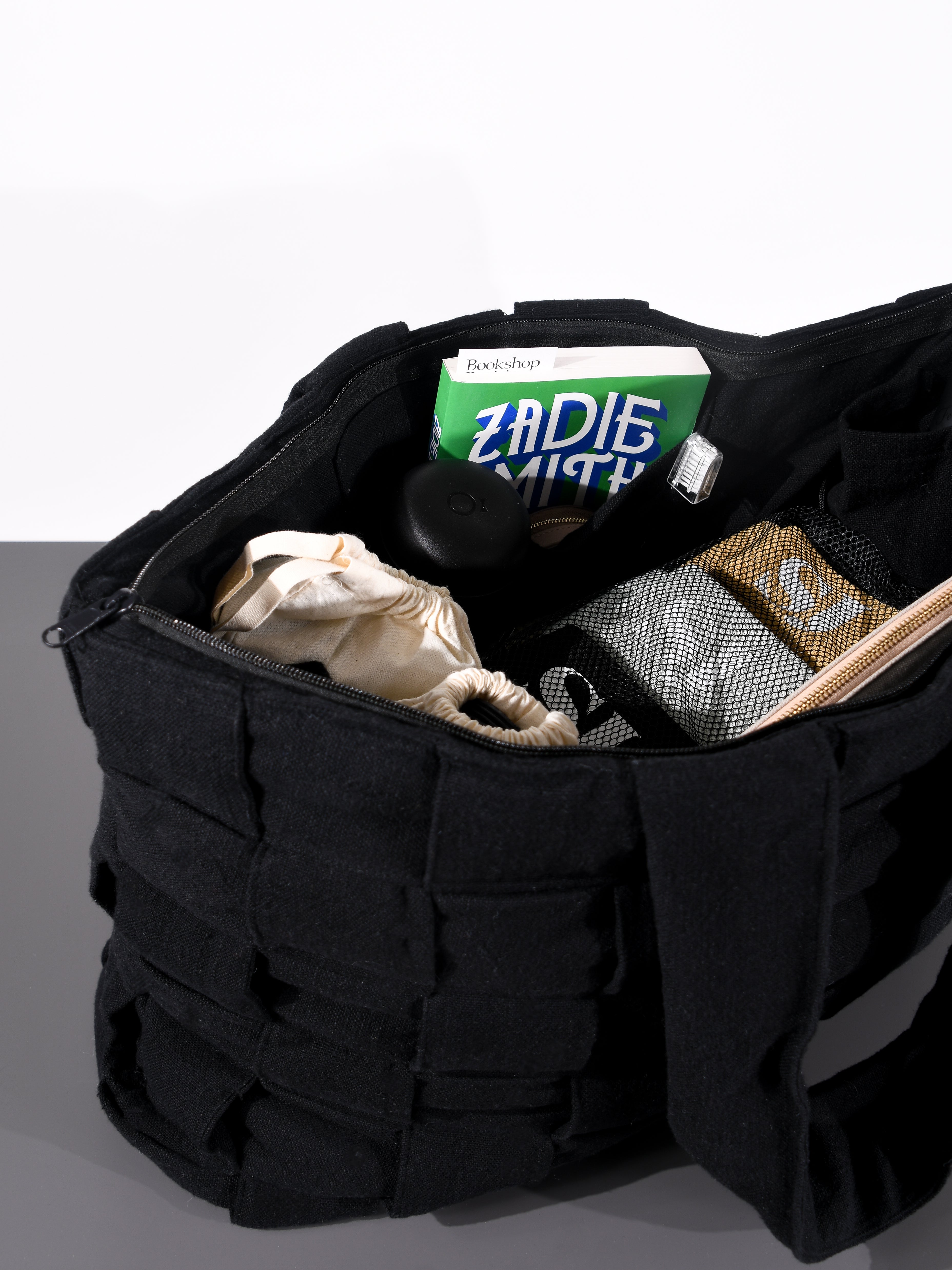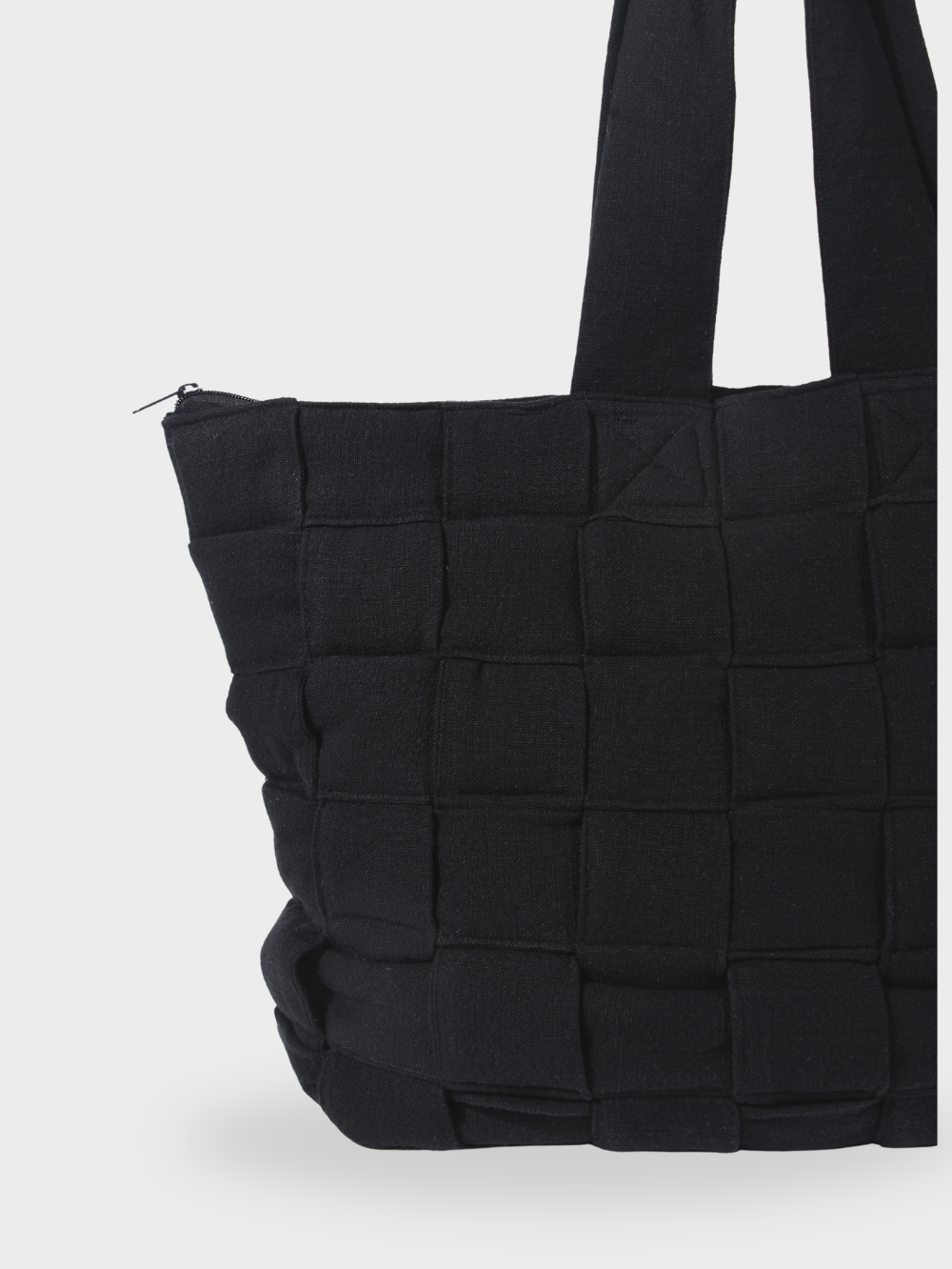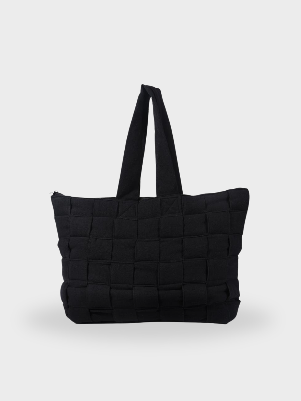 Your solution for that quick weekend trip. With just enough room to pack your essentials for a few days, and two snug pockets for full sized bottles of wine (you're welcome), our weekender will become your most used travel bag. Made of a cotton linen blend, and a quilted woven pattern to look chic sitting on your shoulder. Pair this with our Woven Carry-All for the perfect travel bundle.